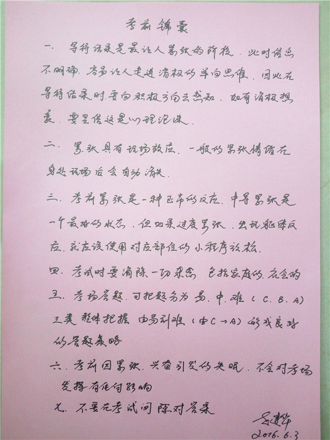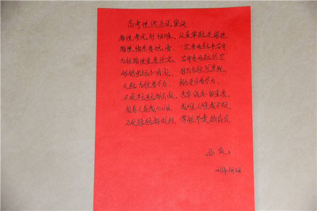 高考在即,为帮助考生调整考前心理、明确考试注意事项、把握解题技巧,涿鹿中学高三教师亲自书写“应试锦囊”,赠送给学生。