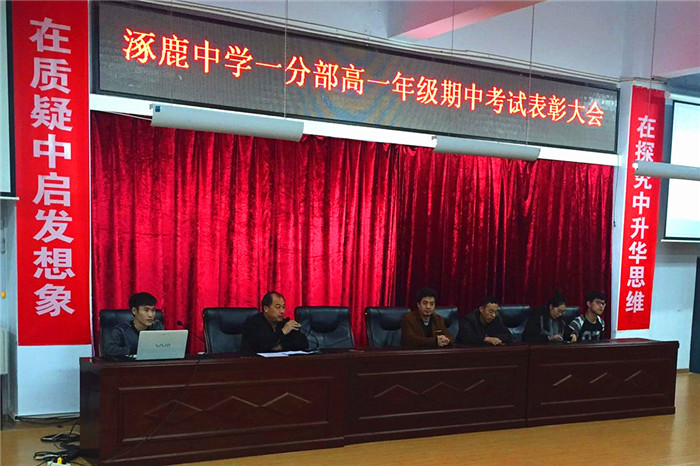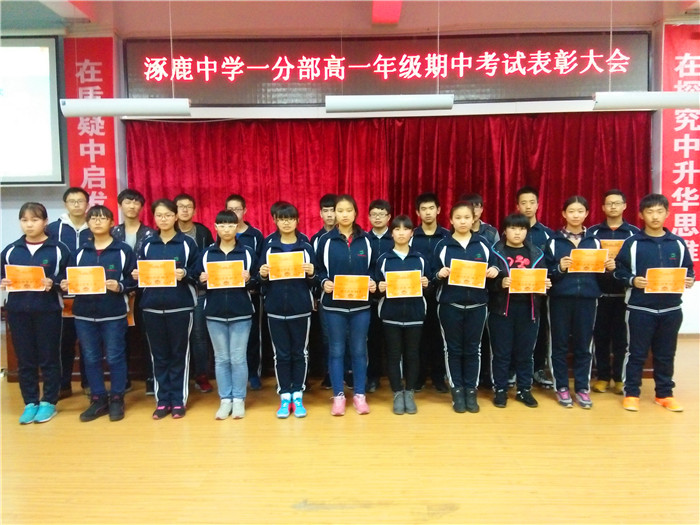 2016年11月27日晚,涿鹿中学一分部高一年级在学生报告厅召开期中考试表彰大会。乔桂民主任、各班班主任和一分部全体高一学生参加大会。白瑞明老师主持表彰会。
