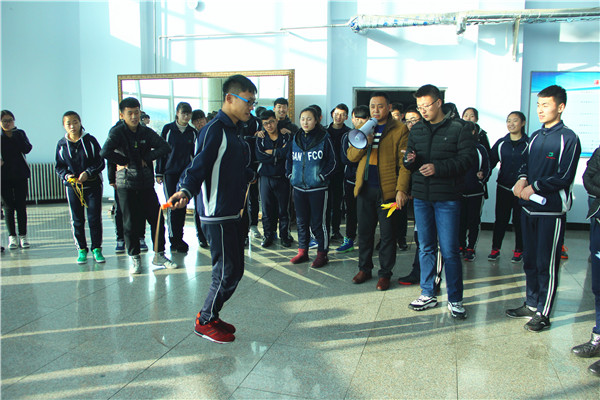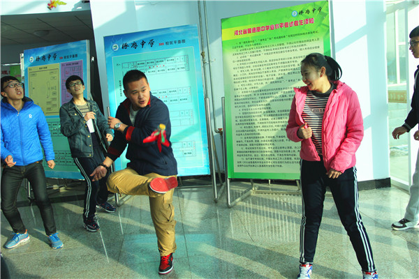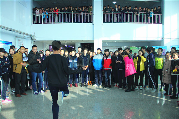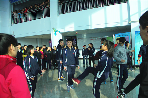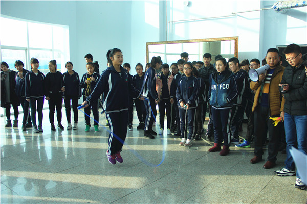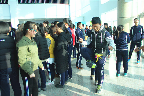 临近期末,为了响应学校阳光体育活动要求,丰富同学们课余生活,调节紧张的学习,2017年1月8日大课间,涿鹿中学二分部高三年级经过精心策划与准备,在一楼圆弧大厅举行了学生跳绳和踢毽子比赛。级部主任温荣斌和各班班主任亲临赛场指导观摩比赛。