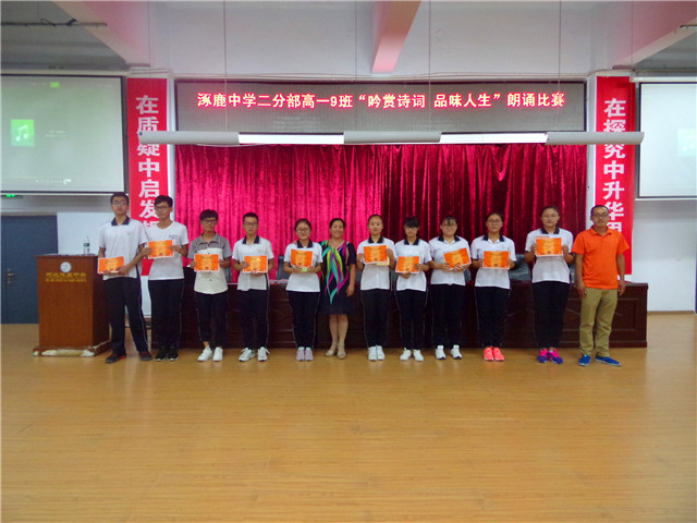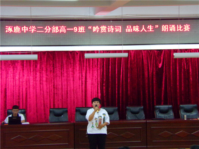 2017年6月15日晚,在二分部高一年级级部领导与涿鹿中学团委学生会的大力支持下,高一九班在第二报告厅成功举办“吟赏诗词,品味人生”朗诵比赛。
