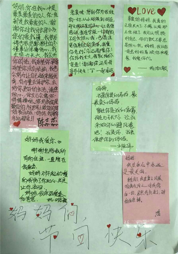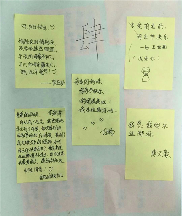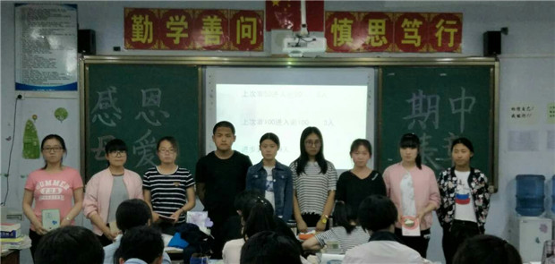 “无论天有多黑,无论路有多远,无论高山洼地,都感受到您的时时慈念。你给的思念、无悔的爱,原来一直,是凝视我回家的深情眼眸。” “你入学的新书包有人给你拿,你雨中的花折伞有人给你打,你委屈的泪花有人给你擦。” 声声旋律悠扬,字字发自内心,句句催人泪下——2017年5月14日母亲节,二分部高二年级召开“感恩母爱”主题班会,各班学生以真挚的情感表达着对母亲的爱。 你身在他乡住有人在牵挂,你露出笑容时有人乐开花。每个家长无不关注着自己的子女,用优异的成绩回报辛苦的家长,用不断的进步感谢家长的无私奉献,是每个学生的共识。期中考试成绩优秀学生、进步学生,无疑是感恩父母的最好礼物。 “努力,努力,再努力!加油,加油,再加油!”——这是优秀学生代表的誓言,道出了学生的争创佳绩的决心。 “我要继续努力,用不断的进步回报您! 妈妈,您辛苦了,我爱您!”——这是进步学生的获奖感言。 用优异的成绩和不断的进步献礼母亲节,也是老师们对学生的期望和祝福!为你们加油!加油! 二分部高二年级 王昕刚 张盼