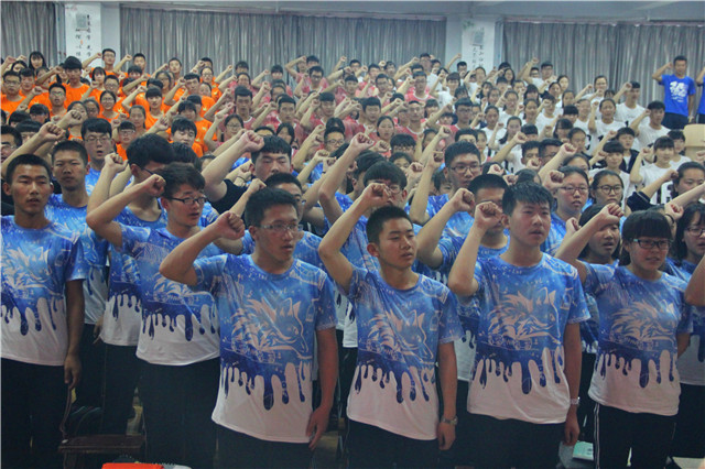 用梦想妆扮人生,用信念克服困难,用行动浇筑成功,今晚的涿中校园激情澎湃,今晚的涿中学子豪气冲天,为了一个信念、为了一个理想,涿鹿中学二分部高三年级在学生报告厅隆重举行“2017高考倒计时30天誓师大会”。分部校长赵文成、级部主任温荣斌和全体班主任出席大会。白可心副主任主持。 誓师大会在全体师生雄壮的国歌声中开幕。高三9班魏庆男同学代表全体同学表达了奋战30天、誓夺高考新辉煌的决心和信心。谭丽娜老师向同学们一年来的进步表示了祝贺,并代表二分部高三年级全体教师表示,在这最后30天里,一定会奋力耕耘,竭尽全力,“甘将心血化时雨,润出桃花一片红”,帮助同学们花开六月,圆梦涿中! 二分部主管校长赵文成向同学们强调了高考冲刺最后三十天的意义和价值,并重点介绍了最后三十天中,在学习、生活、心理调整等方面的科学方法,希望全体同学要坚定信心、不言败、不放弃,要在训练的同时注重核心基础知识,以科学的方法指导最后阶段的学习。 级部主任温荣斌望着三年以来朝夕相处的同学感慨万分,向同学们送上十句人生格言,希望全体同学不忘初心,心怀理想,战胜困难,实现自己人生六月的辉煌! 最后,大会在同学们豪迈的誓言中圆满落幕! 30天,是冲刺的30天,是造就人生辉煌的30天。珍惜30天,让飞翔的梦想在六月张开翅膀;奋斗30天,让青春的智慧在六月发出光芒;拼搏30天,让父母恩师在六月畅想期望。一万年太久,只争朝夕。冲锋的军号已经吹响,战斗的钢枪已经擦亮,祝同学们乘风破浪,奋战30天,决胜六月,再创辉煌! 青春少年,十载磨剑,争分夺秒,今朝奋搏折桂梦 涿中学子,寒窗励志,于斯荟萃,他日同攀摩云路