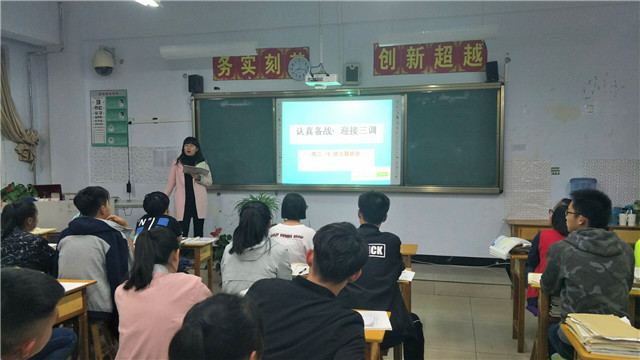 4月16日晚第三节晚自习,我校三分部高二年级各班召开了“备战会考,冲刺4月月考”的主题班会。 班会课上,同学们踊跃发言,谈问题、找缺点、提目标。班主任向同学们强调了会考在高中学段以及高考自主招生中的重要作用,鼓励同学们要认清严峻形势,坚定必胜信念;锁定奋斗目标,顽强拼搏进取;抓好课堂,认真完成作业;讲究备考策略,落实复习计划;积极调整心态,合理安排作息,以良好的学习状态、高效的学习方法,取得月考和会考的胜利。 本次班会课是对同学们的学习情况的一次总结和鼓舞,同学们既认识了学业水平考试的重要性,又明确了学习目标,增强了学习的动力。】 三分部高二年级 董民慧