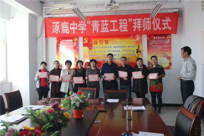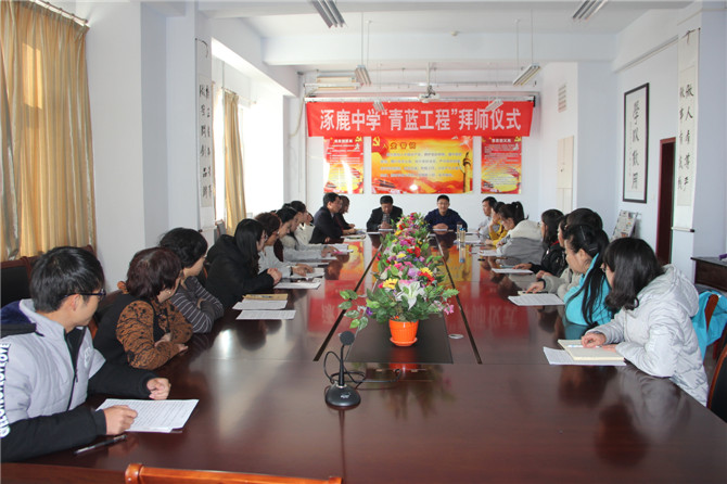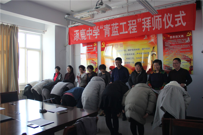 3月8日下午,涿鹿中学为河北师范大学顶岗实习教师组织的“青蓝工程”师徒结对拜师仪式在行政楼二楼会议室成功举行。涿鹿中学校长赵建华、副校长张成、闫慧武、何晓乐、教务处徐亚卓主任、教科处翁智主任、人事处石建芳主任出席拜师仪式。闫慧武副校长主持活动。