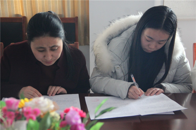 拜师仪式上,师徒在《结对协议书》上签字,实习教师向导师深鞠一躬,正式拜师。导师代表姜海杰老师和实习教师代表郭燕同学分别发言表达了对教育的热爱和对教师职责的忠诚。