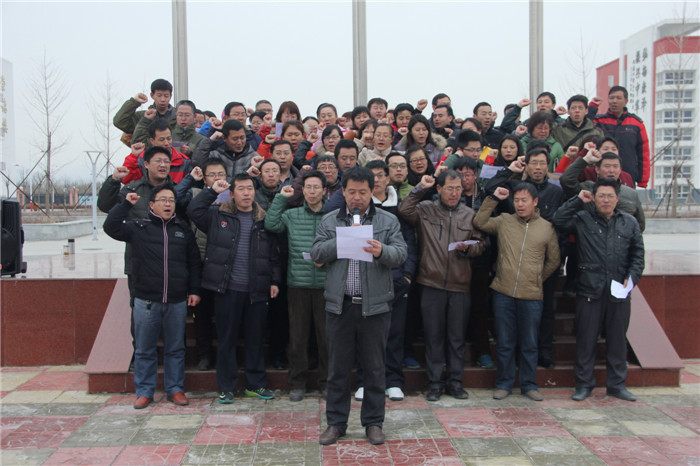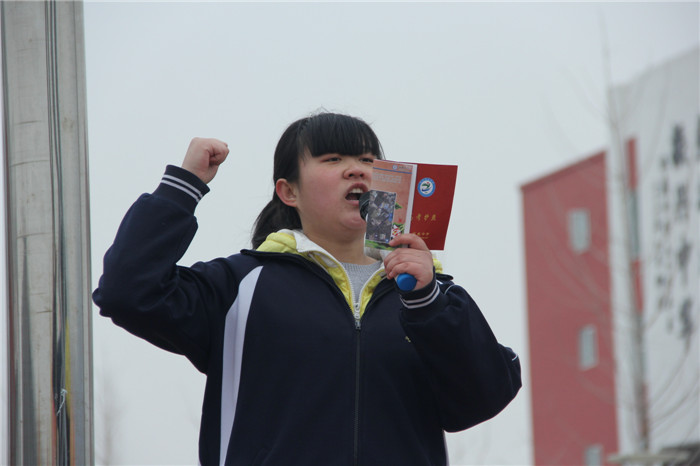 黄坚老师再次用他热情的演讲将学生的激情和斗志点燃。全体师生举起右拳向迎风飘扬的国旗庄严宣誓: