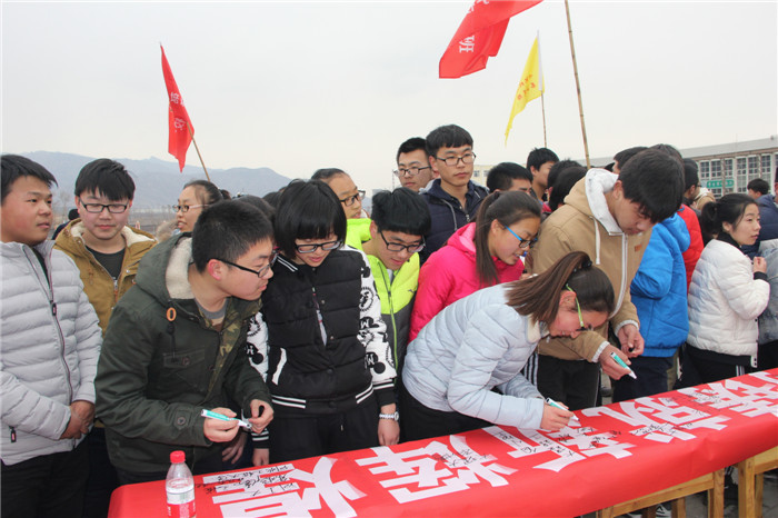 春寒料峭,难挡涿中高三学子奋斗精神,2016年2月27日,距高考100天之际,涿鹿中学高三全体师生隆重举行高考百日誓师野外拓展活动。通过观看央视《高考》纪录片、听专家演讲、15公里远足、挥写理想大学、百日宣誓活动,涿中高三年级全体师生享受了一场意义非凡的精神上的饕餮盛宴。