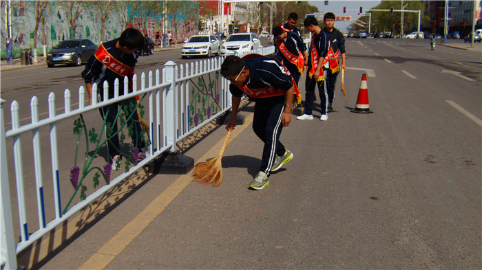 同学们分工明确、纪律严明,有的负责擦护栏,有的负责铲除小广告,有的负责清理街道,有的负责清理路边野草,大家忙的不亦乐乎,即使汗水浸湿面庞,大家脸上也洋溢着幸福的笑容,路过的行人,不时向他们投过赞赏的目光。