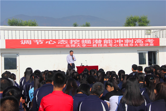 2016年5月10日清晨,著名心理辅导专家、中国青少年健康教育专业委员会副秘书长、北京师范大学教授李一博士亲赴涿鹿中学为高三师生进行题为“调节心态 挖掘潜能 冲刺高考”考前心理辅导讲座。