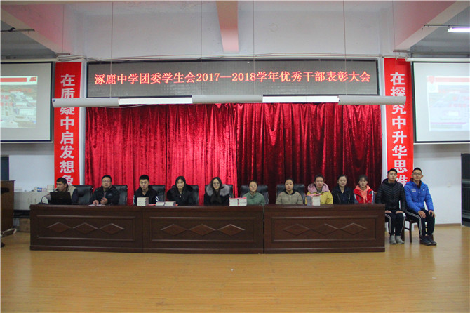 1月5日晚,涿鹿中学校团委在学生报告厅隆重召开校团委学生会2017—2018学年优秀干部表彰大会,校团委书记郭冬根、干事王佰成老师、学生会副主席闫磊同学、王亚洲同学、陈雪琪同学和团委学生会全体成员出席大会。表彰会由王佰成老师主持,郭冬根书记做总结讲话。
