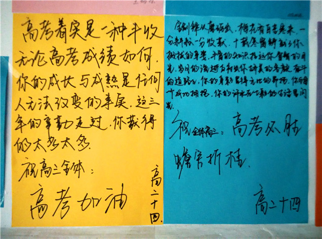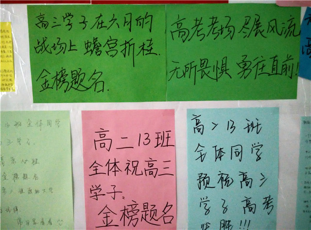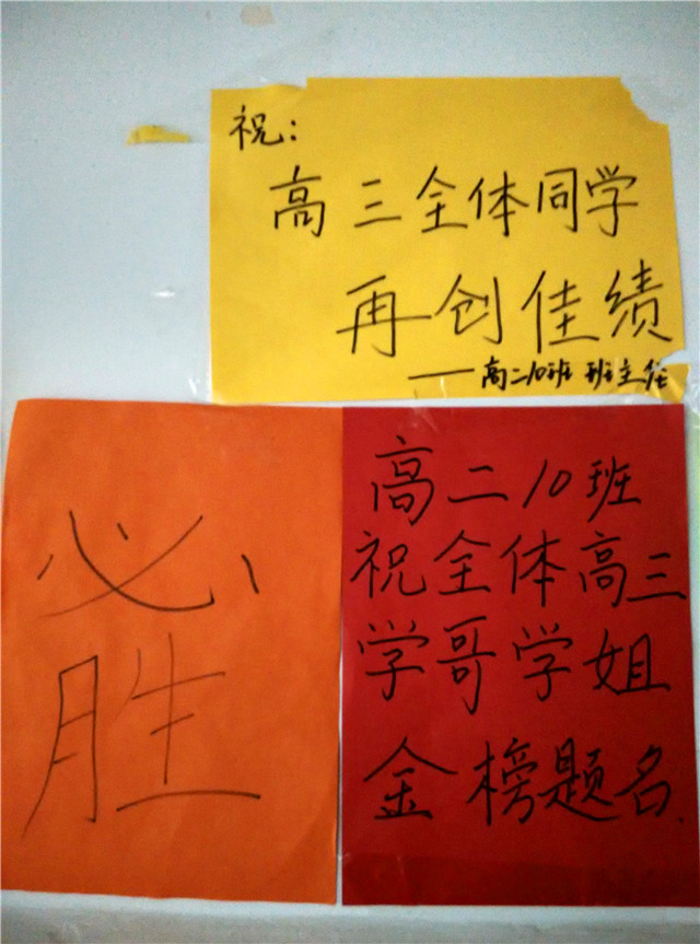 战鼓隆隆催人奋进,旌旗列列共赴征程。寒窗耕读,终将收获,又到一年一度的高考季。我校高三学子秣马厉兵,为高考作最后的冲刺。 “高考的征程上你并不是孤独,诚挚的祝福,是伴你远行的真实写照,高考征途中老师、家长、同学都会坚定的陪在你左右。” 高一高二年级的同学们在高考祝福板上,自发为高三学长送上祝福—— “回首向来萧瑟处,每一次日出、每一层涟漪都是美丽动人的;每一袭风浪、每一片乌云都是值得感激的。二分部高二年级12班全体同学,衷心地祝福高三同学在今年高考中一举夺魁,榜上有名!” “心有多大,舞台就有多大。只要拥有自信,拥良好心态,加上自己的努力,那么你一定会到达成功的彼岸。高考在即,我们坚信只要你努力,就一定会有不菲的收获。”——这是来自高二14班的高考祝福。 “百日誓师砺兵林马迎高考何忧无友,六月会战勇冠三军夺蟾桂必定有君。三年的汗水即将化为胜利的果实,用汗水谱写自己的青春赞歌。高考路上你们并不寂寞,二分部高二年级全体师生将一路为你们加油鼓劲!” 今天为你们加油,放飞梦想,祝福你们蟾宫折桂。明年我们也将奔赴高考征程,继续努力,感恩成长,力争题名金榜,圆梦涿中! 涿鹿中学 王昕刚 张盼