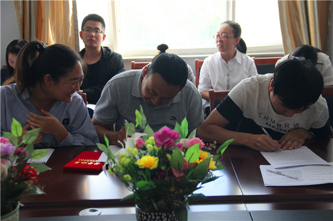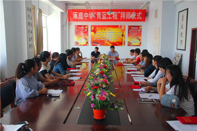 9月18日下午,涿鹿中学“青蓝工程”师徒结对拜师仪式在行政楼二楼会议室成功举行。县教科局人事科秦京来科长、涿鹿中学校长赵建华、副校长闫慧武、何晓乐、教务处徐亚卓主任、教科处翁智主任、人事处石建芳主任出席拜师仪式。闫慧武副校长主持活动。 闫慧武副校长主持仪式 本学期共有15为教师签约我校,5位河北师范大学顶岗实习教师来我校教育实习。为加快青年教师成长的步伐,加大青年教师岗位成才的力度,涿鹿中学以“青蓝工程”为依托,为这二十位老师指定了优秀骨干教师作为导师,以师徒结对为基本形式,提高青年教师的教育教学水平。 石建芳主任宣读师徒结对名单 秦京来科长向导师颁发聘书 导师合影 青年教师行拜师礼 仪式上,石建芳主任宣读了师徒结对名单,秦京来科长为导师颁发聘书,并合影留念。随后,师徒在《结对协议书》上签字,新教师向导师深鞠一躬,正式拜师。 新教师代表赵晓芳老师发言 导师代表韩乐乐老师发言 新教师代表赵晓芳老师和导师代表韩乐乐老师相继发言,表达了对教育的热爱和对教师职责的忠诚。 何晓乐副校长宣读《涿鹿中学教师师徒结对活动实施方案》 徐亚卓主任宣读教务处工作要求 翁智主任布置科研处工作 何晓乐副校长代表校委会宣读了《涿鹿中学教师师徒结对活动实施方案》。教务处徐亚卓主任和科研处翁智主任分别布置了教科研常规要求及对新教师教育教学检查内容。 赵建华校长讲话 赵建华校长强调指出,“青蓝工程”作为我校教育教学工作的重要内容,既是优秀教师对我校发展的重要贡献,又是新教师快速成长的重要支撑,希望导师真正负起责任,无私帮助和关心青年教师的成长,青年教师主动、虚心地向导师学习,不断提高自身的教育教学水平;希望新教师做好个人成长规划,树立教育理想,了解优秀教师的成长规律;希望谨记教师职业道德规范,在工作中做到师德高尚、业务精湛、充满活力。 秦京来科长讲话 最后,秦京来科长对本次“青蓝工程”师徒结对拜师仪式给予极高的评价和肯定,希望 “青蓝工程”成为涿鹿中学教育教学发展的一块品牌,师徒教学相长,师生关爱和谐,在三祖文明的沃土上,为涿鹿教育发展、为涿中发展贡献自己的力量,实现人生价值的升华。 涿鹿中学宣传中心 孟庆泉 郭庆全