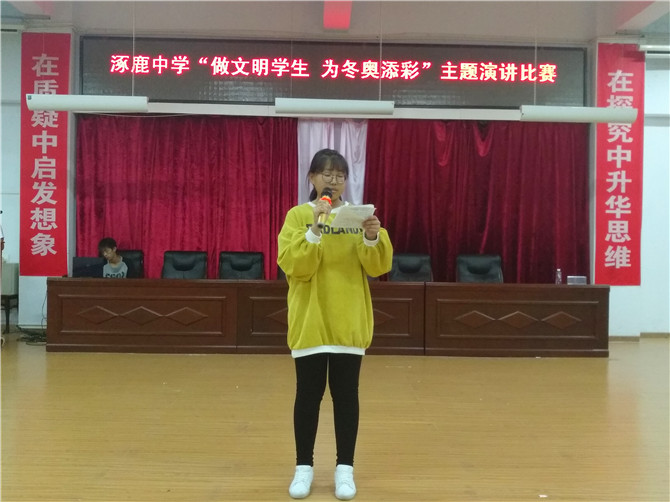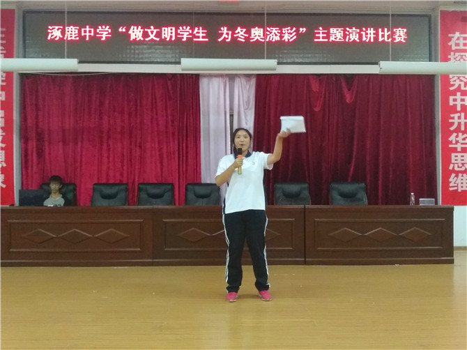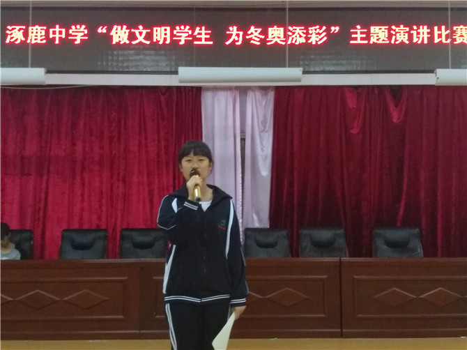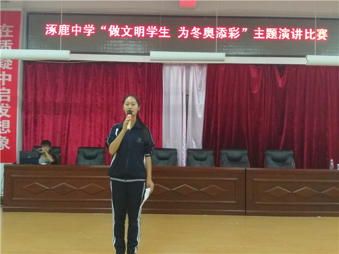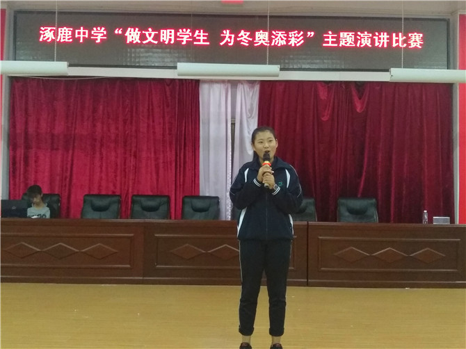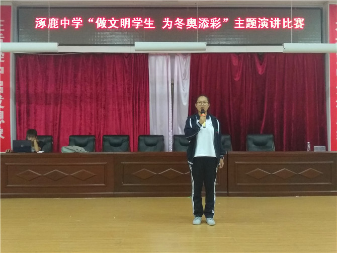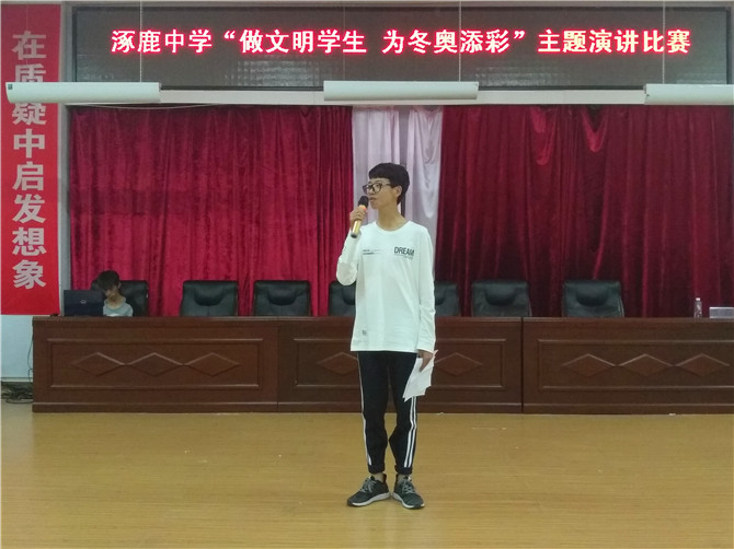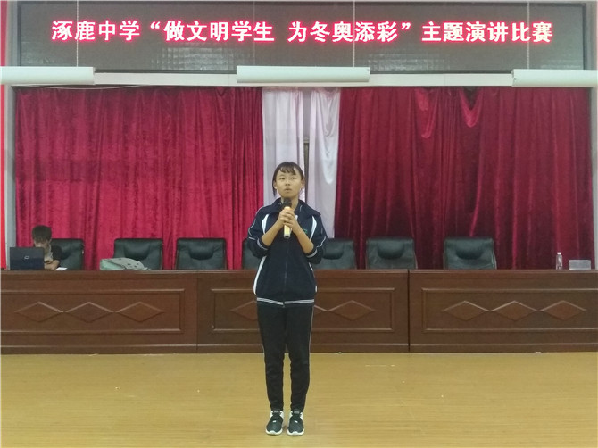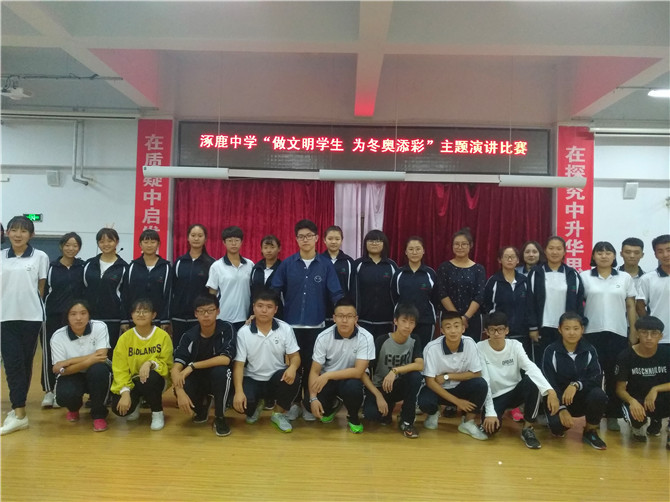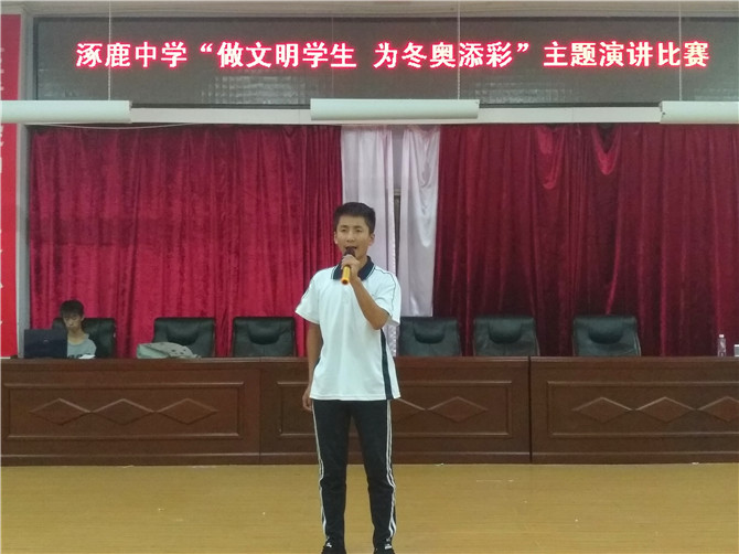 为加强文明校园建设,推进我县文明城市创建,助力张家口市2022年冬奥会,近日,涿鹿中学校团委成功举办以“做文明学生,为冬奥添彩”为主题的演讲比赛。 本次比赛选手均为2017级高一新生。比赛中,选手态度认真,准备充分,他们用真挚的语言,澎湃的激情,表达了自己追求梦想、热爱家乡的思想感情。 本次比赛不仅为同学们提供了展示自我的舞台,更激发了同学们励志拼搏的勇气,鼓励同学们在创建文明城市活动中,守规范、正学风,争做文明学生,为京张奥运的成功举办贡献自己的力量! 涿鹿中学校团委 郭冬根 王佰成
