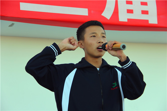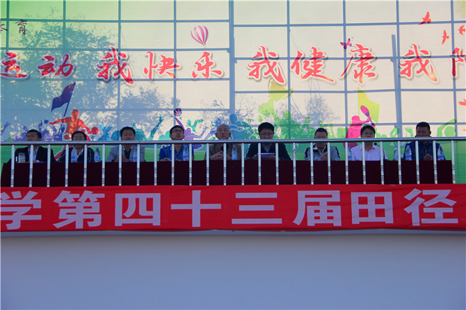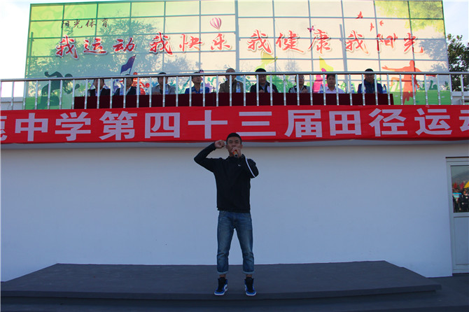 在裁判员代表及运动员代表上台宣誓后,教科局副局长高峰河宣布“涿鹿中学第43届田径运动会现在开始。”