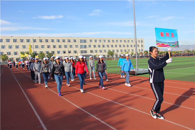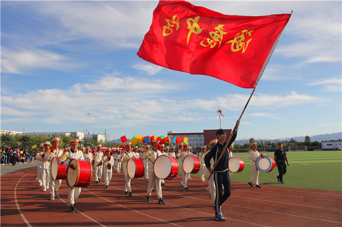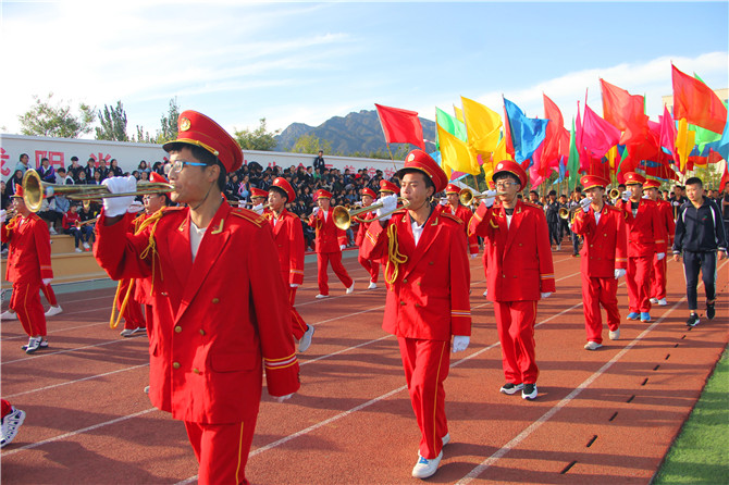 伴随着铿锵有力的运动员进行曲,国旗护卫方队、鼓乐方队、彩旗方队、裁判员方队和运动员代表队依次入场。鼓乐铿锵,军号嘹亮,彩旗飘扬,同学们步伐矫健,展示了我校莘莘学子自信阳光、充满活力的精神风貌和全力拼搏、助力冬奥的信心与热情。