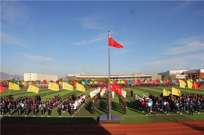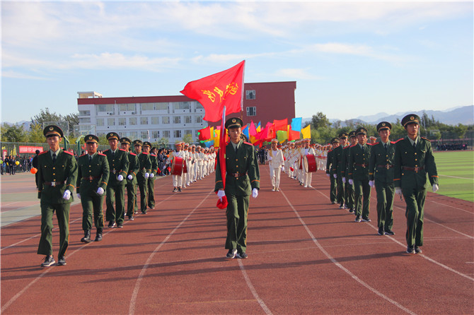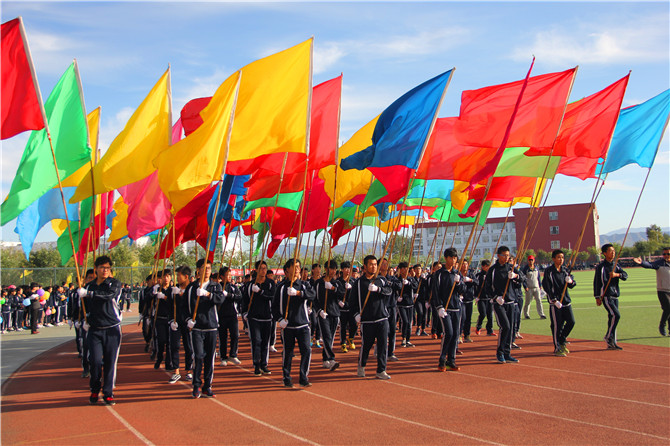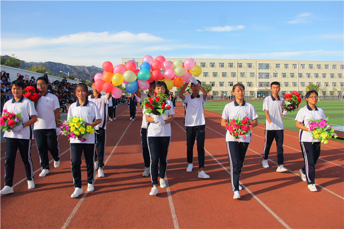 伴随着雄壮的国歌,鲜艳的五星红旗缓缓升起。涿鹿中学校长赵建华在开幕式致辞中介绍了我校近年来教育教学工作中取得的优异成绩,希望全体同学以本届运动会为契机,刻苦训练、顽强拼搏、坚忍不拔、不断超越,在赛场上、考场上勇夺佳绩,成为勇攀高峰的人。在致辞中,赵校长还对运动员、裁判员及相关工作人员提出要求。他希望广大教练员、裁判员、运动员和工作人员尽职尽责,努力把本届运动会办成一次“更高、更强、更快”的体育盛会,为冬奥助力,为我县文明城市创建助力,为我校素质教育全面发展做出新的贡献,以更大的成绩欢庆国庆,喜迎党的十九大胜利召开。