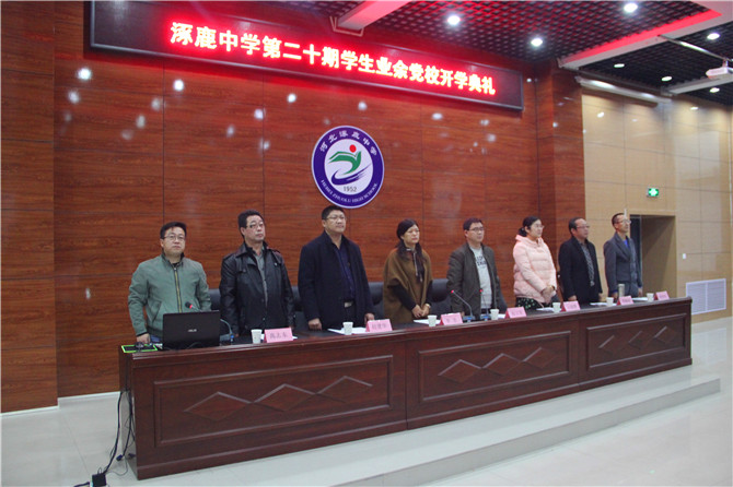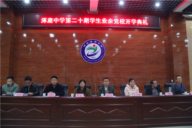 11月13日下午,涿鹿中学在第一报告厅隆重举行第20期学生业余党校开学典礼。县委组织部副部长赵立军、县委宣传部副部长李芳、团县委书记云晓静、教科局机关党委书记李晓斌、教科局党委办公室主任唐继明、涿鹿中学校长赵建华等校领导和221位学员参加了开学典礼。校团委书记郭冬根主持开学典礼。