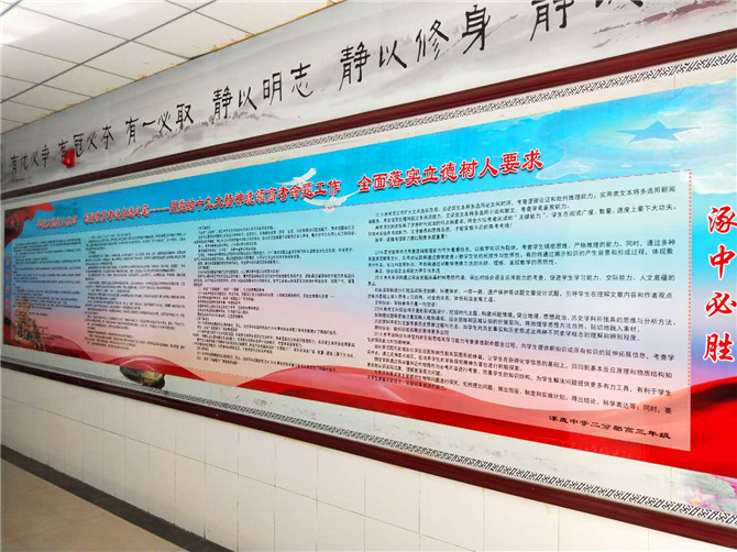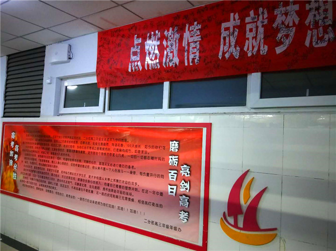 滴水穿石战高考如歌岁月应无悔,乘风破浪展雄才折桂蟾宫当有时!廊道文化传递着激情,备考动员激发着潜能,也正体现着二分部高三年级“奋斗——让一切皆有可能”的级部精神,正如二分部赵文成校长和高三年级王昕刚主任强调的:“用快乐迎接高考,用沉着对待学习,用平和看待成绩,用无畏去面对坎坷和荆棘”。