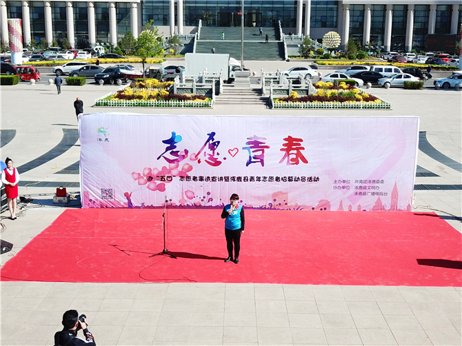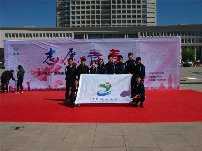 五四青年节之际,5月3日,涿鹿中学校团委“绿色志愿者”大队60名志愿者在校团委书记郭冬根,王佰成、谷爱宏老师的带领下,参加了我县迎“五四”志愿者事迹宣讲暨涿鹿青年志愿者招募动员活动。