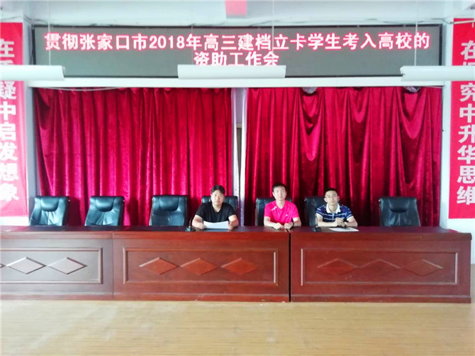 2018年5月30下午,涿鹿中学召开贯彻张家口市2018年高三建档立卡学生考入高校资助会。涿鹿中学副校长杨景丹出席会议。闫小波老师主持并布置安排相关工作。