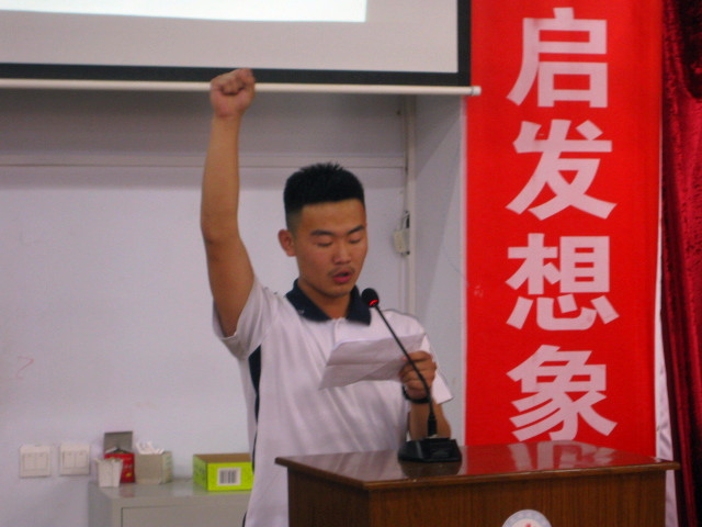 在赵校长讲话的感召下,全体同学进行宣誓。同学们精神饱满,声音高昂,宣示着对一轮复习的决心,宣示着对高考必胜的信心!