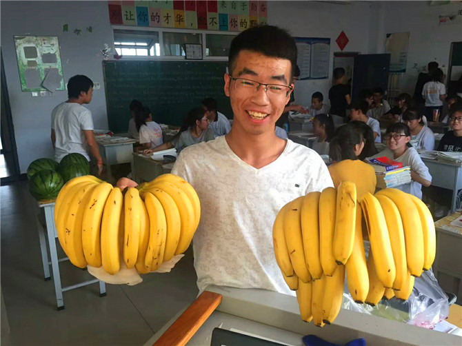 学校为每个班精心准备了各类新鲜水果。看着来自家长或弟弟妹妹等亲人的祝福视频,吃着香甜可口的新鲜瓜果,和身边的老师交谈着过去美好的时光,高考的紧迫感和压力纾解在这果蔬飘香、情义满满的氛围中。所有的爱与期待,此刻都化作满满的信心与决心,2018年高考,必胜!