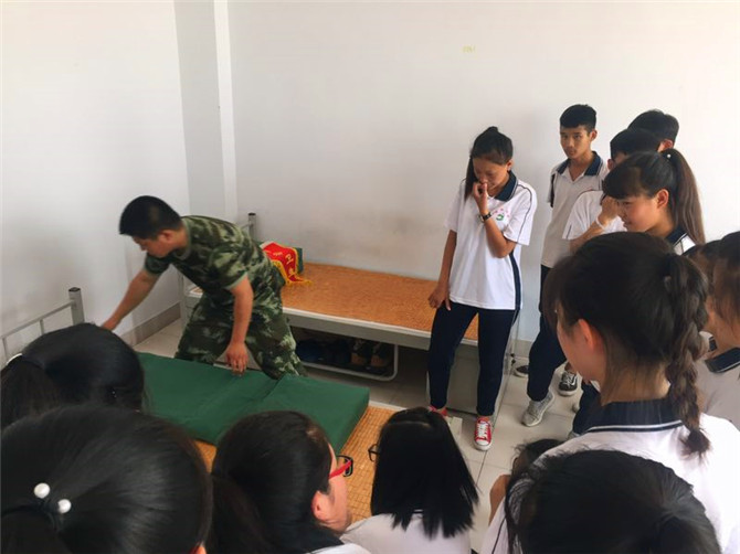 在支队领导的带领下,学生先后参观了支队的消防车库及官兵宿舍。