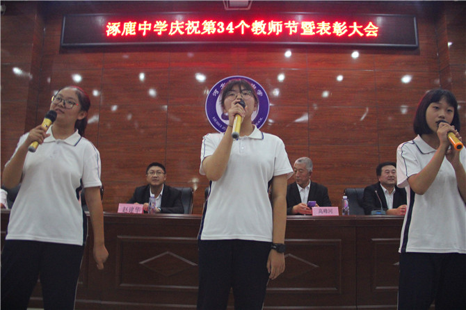 优秀教师代表高丽婷老师进行了发言,彰显了涿中人崇高的精神风貌和开拓创新、脚踏实地、无私奉献的敬业精神。学生向敬爱的老师献上诗朗诵《祝福您,老师》和歌曲《感恩的心》,表达涿中学子对老师的感谢与祝福。